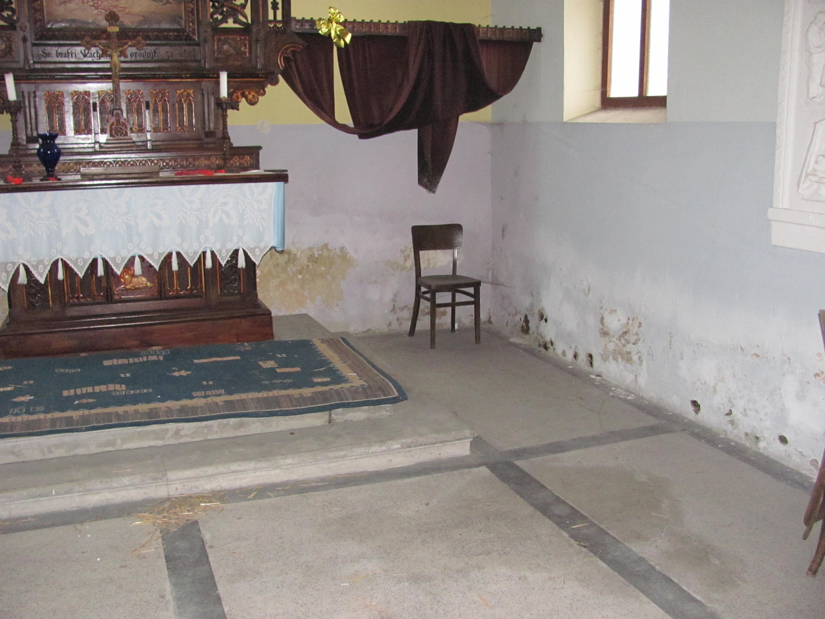 Záměr opravit podlahu kaple do původního stavu, tedy lité teraco, byl zastupitelstvem přehodnocen a v nejbližší době proběhne položení mramorové dlažby ve dvou barevných kombinacích včetně obvodového soklu.